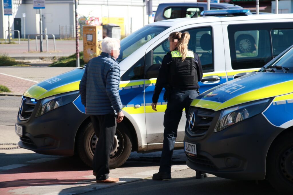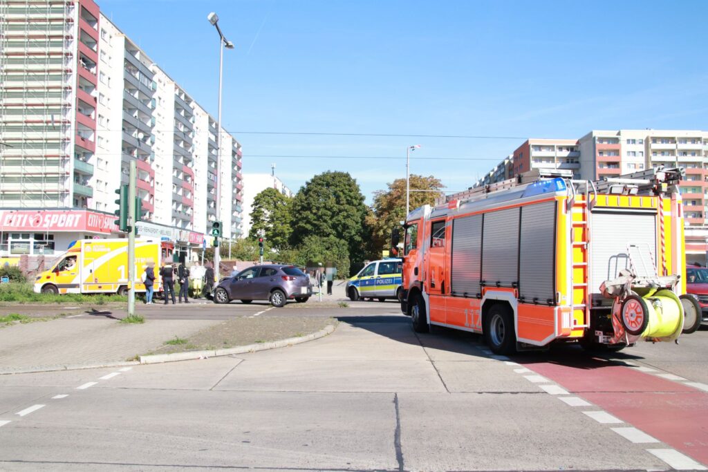 Am Sonntagvormittag kam es gegen 11.45 Uhr an der Kreuzung Alte Hellersdorfer Straße / Zossener Straße zu einem Verkehrsunfall. Ein 79-jähriger Fahrer eines Mazda2 nahm die Kurve zu früh und kollidierte dabei mit einem Ampelmast.