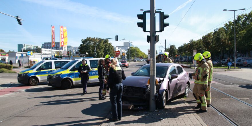 Am Sonntagvormittag kam es gegen 11.45 Uhr an der Kreuzung Alte Hellersdorfer Straße / Zossener Straße zu einem Verkehrsunfall. Ein 79-jähriger Fahrer eines Mazda2 nahm die Kurve zu früh und kollidierte dabei mit einem Ampelmast.