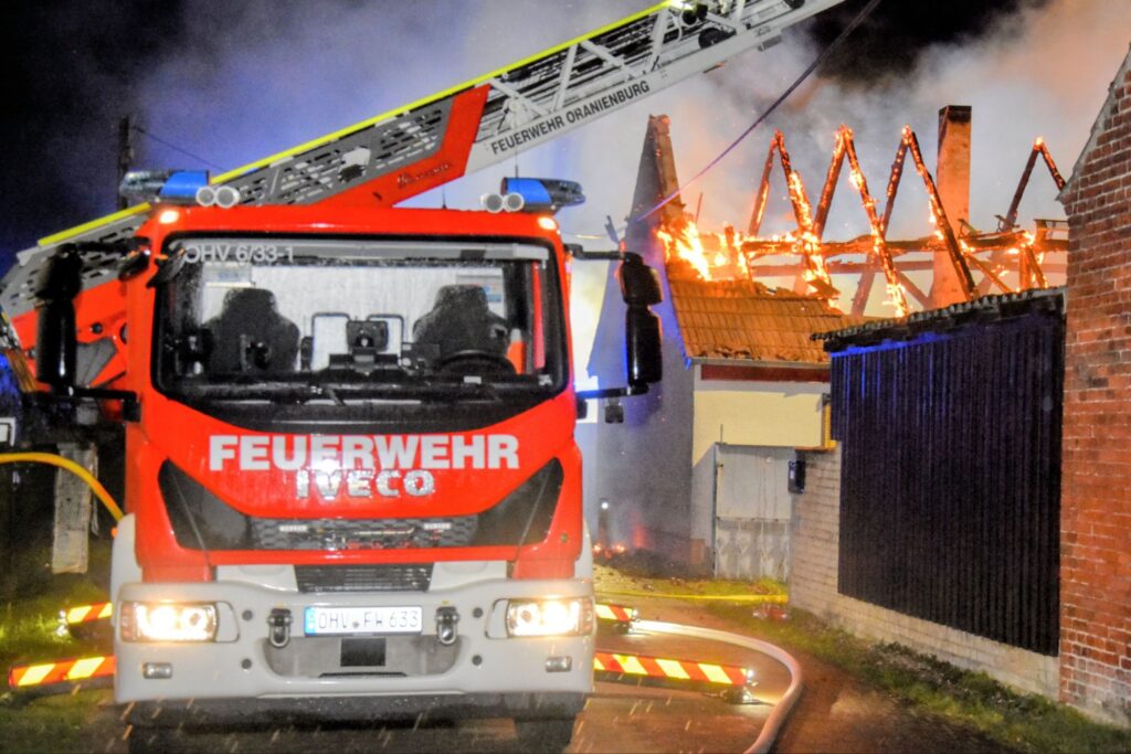 In der Nacht zum Dienstag wurde gegen 1 Uhr die Feuerwehr Oranienburg zu einem Dachstuhlbrand in der Zühlsdorfer Straße im Ortsteil Wensickendorf alarmiert. Beim Eintreffen der ersten Einsatzkräfte stand der Dachstuhl eines Einfamilienhauses bereits in Vollbrand.