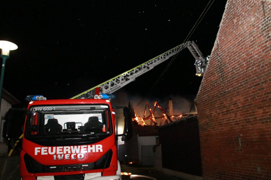 Wie ein Feuerwehrsprecher vor Ort mitteilte, brannte der Dachstuhl auf einer Fläche von etwas mehr als 50 Quadratmetern. Beim Eintreffen der Feuerwehr brannte das Feuer bereits durch die Dachhaut, und Flammen schlugen durch die Dachpfannen. Der Dachstuhl konnte nicht mehr gerettet werden und brannte vollständig nieder.