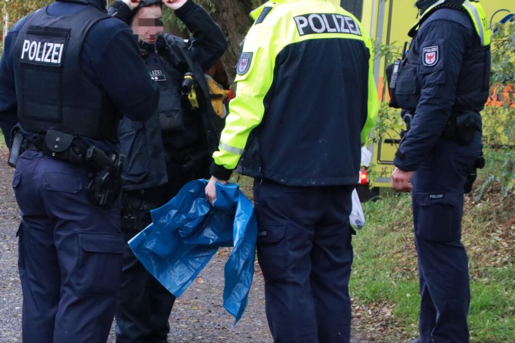 Die Polizei hat den Brandort beschlagnahmt und die Ermittlungen zur genauen Ursache aufgenommen. Eine Beamtin sicherte vor Ort Brandgut als Beweismaterial.