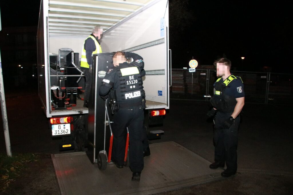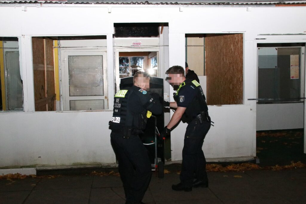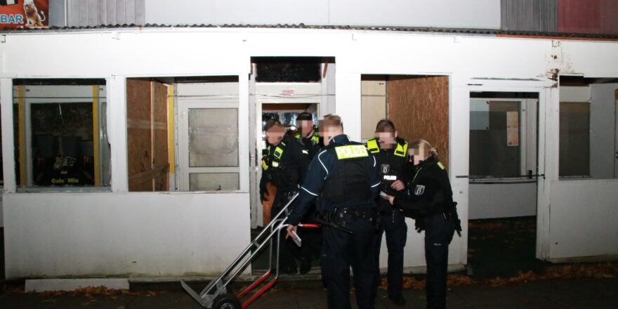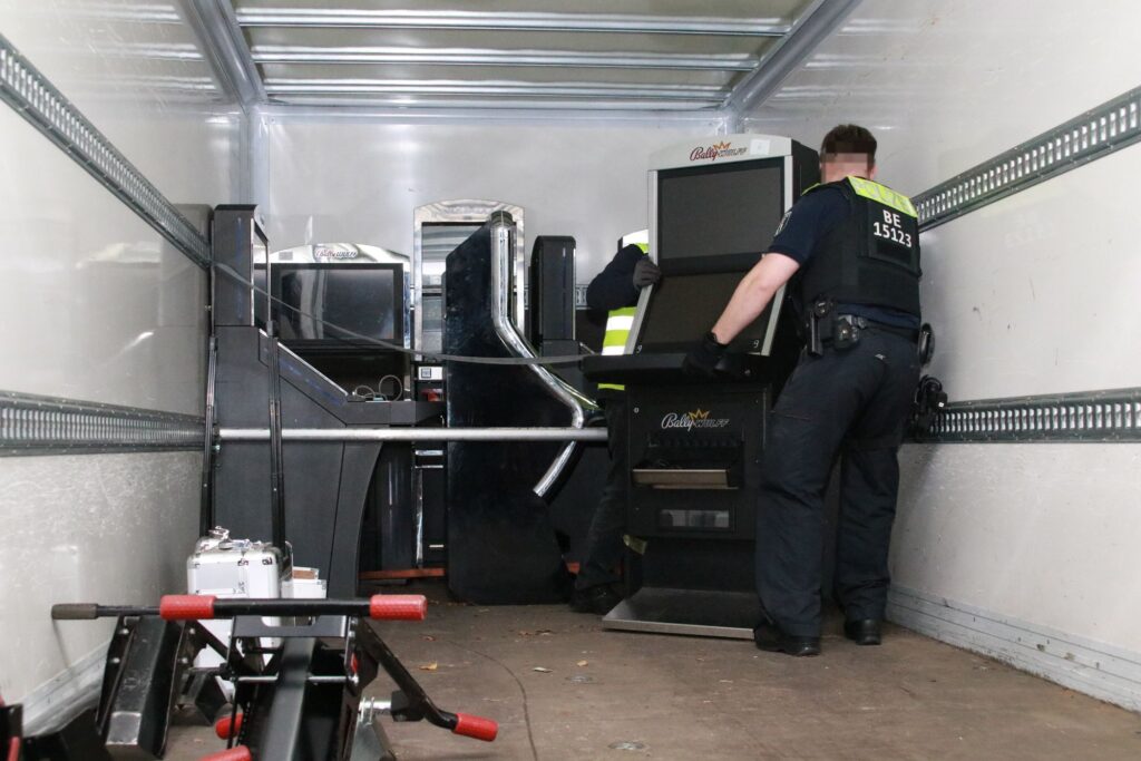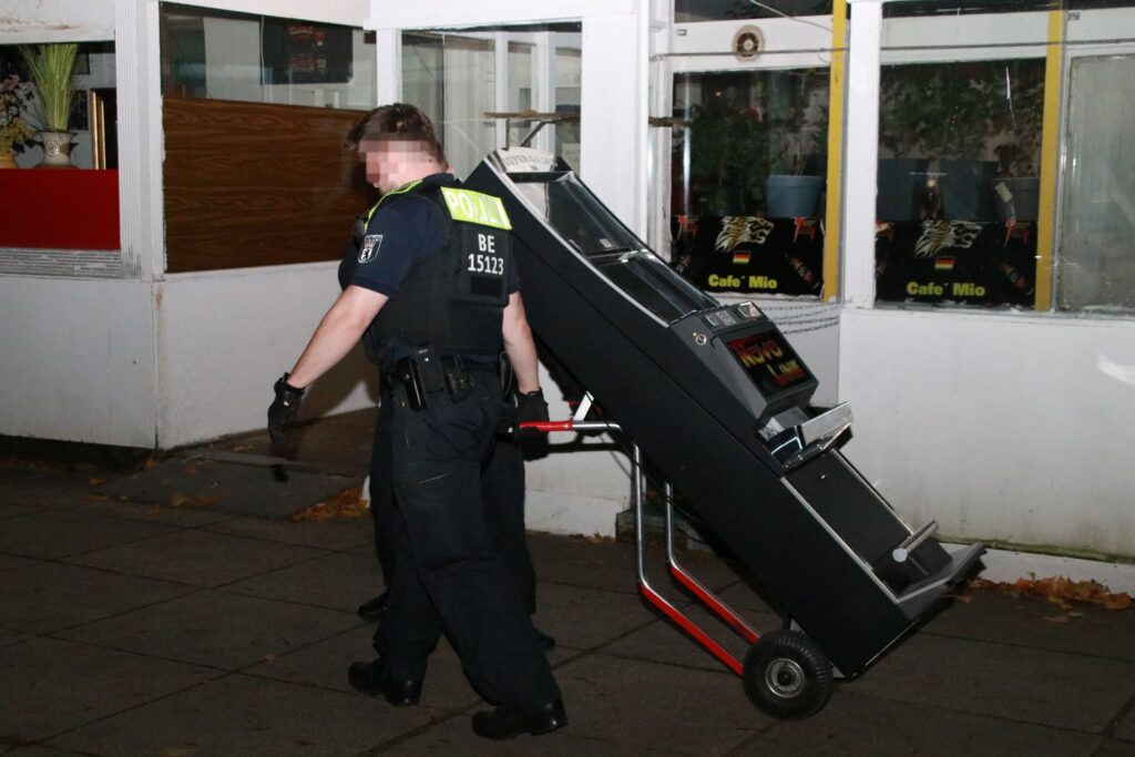 Im Gebäude fanden die Beamten zehn Geldspielautomaten vor, die unüblicherweise nummeriert sind, von denen drei defekt waren. Die sieben funktionsfähigen Geräte wurden von der Polizei Berlin sichergestellt und mit einem Lkw abtransportiert. Beim Abtransport wurden die Einsatzkräfte durch die 15. Einsatzhundertschaft unterstützt.