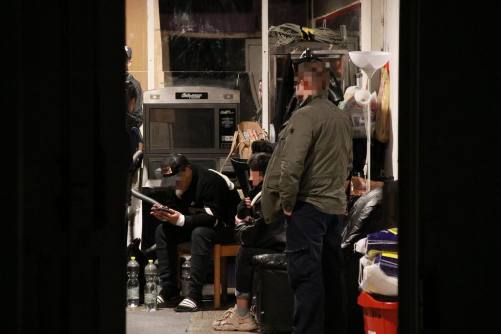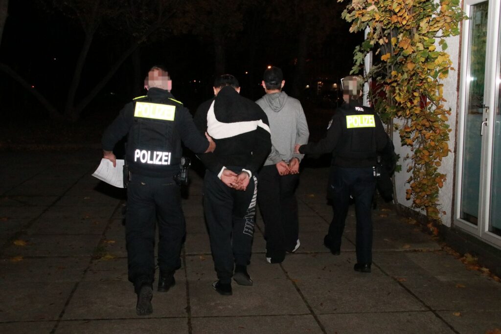 Zur Feststellung der Identitäten der anwesenden Personen wurde die Polizei, insbesondere der Abschnitt 34, hinzugezogen. Eine Beamtin mit Sprachkenntnissen unterstützte die Einsatzkräfte vor Ort bei der Verständigung. Zwei Männer wurden mit einem angeforderten Gefangenentransporter zur erkennungsdienstlichen Behandlung gebracht. Gegen eine der angetroffenen Personen lag ein offener Haftbefehl vor.