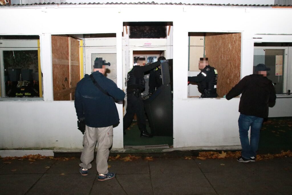 Bei der weiteren Durchsuchung des Gebäudes fanden die Beamten in einem ausgebauten Nebenraum einen Schlafplatz sowie einen Tresor.