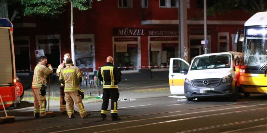 Schwerer Unfall in Lichtenberg- Straßenbahn kracht in Kleintransporter