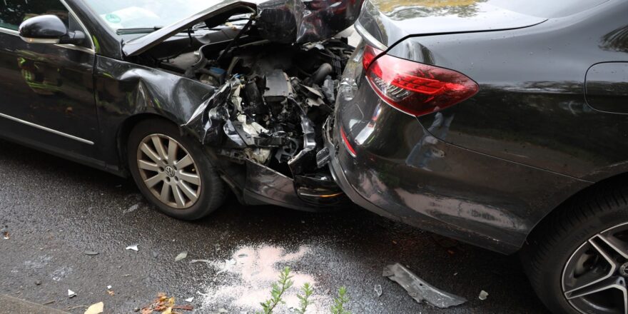 Nach Angaben von Zeugen ereignete sich der Unfall unmittelbar vor der Zufahrt zu einer Tankstelle. Offenbar wollte ein Autofahrer auf das Gelände einbiegen, woraufhin ein vorausfahrender Mercedes abbremste. Ein nachfolgender Volkswagen bemerkte das zu spät und fuhr dem Mercedes auf. Durch den Aufprall wurden zwei Personen verletzt.