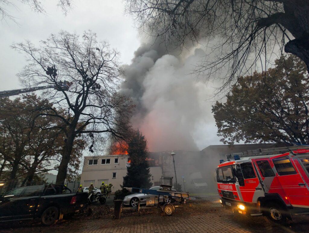 Berlin-Lichterfelde – In den frühen Morgenstunden des 2. November 2025 kam es auf einem Industriegelände am Barnackufer zu einem Großbrand. Gegen 5:20 Uhr ging der Notruf bei der Berliner Feuerwehr ein. Aus zunächst gemeldetem Schuppenbrand entwickelte sich schnell ein Feuer, das auf eine Lagerhalle mit Bürotrakt übergriff. Rund 400 Quadratmeter des Gebäudes und des Geländes waren betroffen.