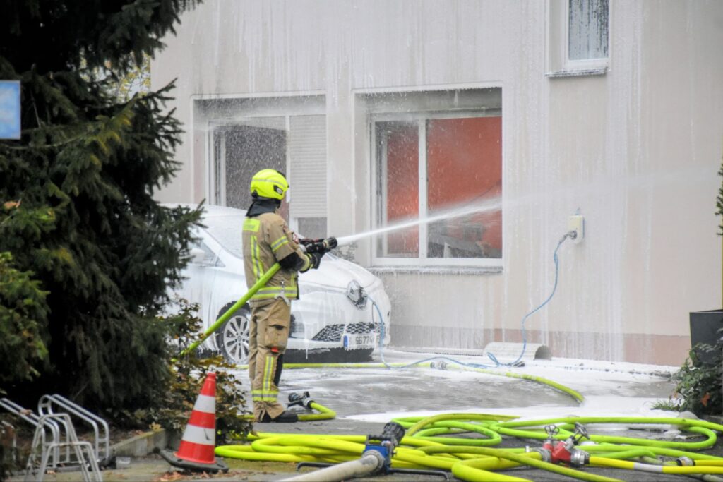 Das Alarmstichwort wurde mehrfach erhöht, insgesamt waren etwa 95 Einsatzkräfte im Einsatz. Ihr Hauptziel war es, ein Übergreifen der Flammen auf ein benachbartes Öllager einer Kfz-Werkstatt zu verhindern – was erfolgreich gelang.