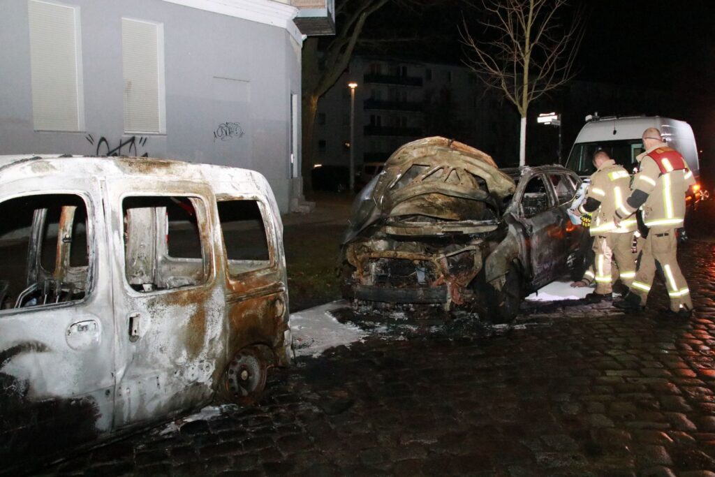 Am Sonntagmorgen gegen 5.30 Uhr meldeten Anwohner der Fritz-Kirsch-Zeile in Oberschöneweide einen brennenden Pkw. Bei dem Fahrzeug handelte es sich um einen Nissan. Die Flammen griffen auf einen davor abgestellten Renault über, der vollständig ausbrannte. Der Nissan wurde durch das Feuer ebenfalls beschädigt, jedoch nicht komplett zerstört. Die alarmierte Feuerwehr löschte beide Fahrzeuge.