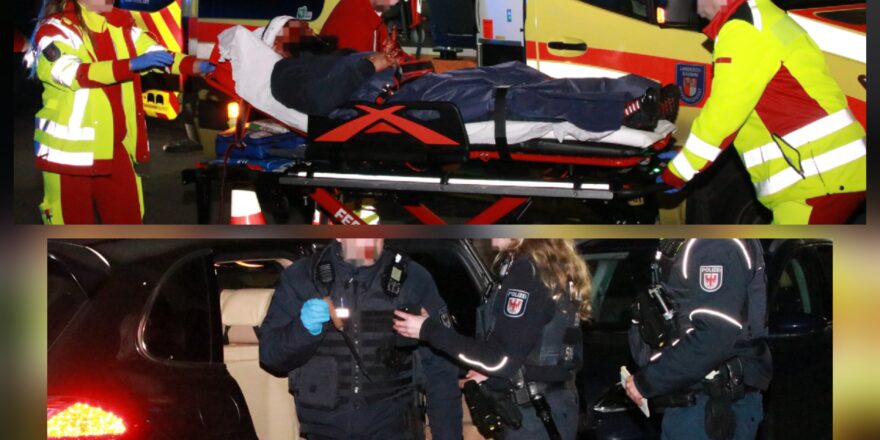 Die Ursache der Kopfverletzung ist unklar, jedoch war eine Scheibe des Porsche von innen beschädigt. Im Fahrzeug fanden Polizisten mindestens ein Messer sowie ein Hackebeil auf der Rückbank. Zudem wurde eine blutdurchtränkte Jacke sichergestellt, die dem Verletzten zugeordnet wird.