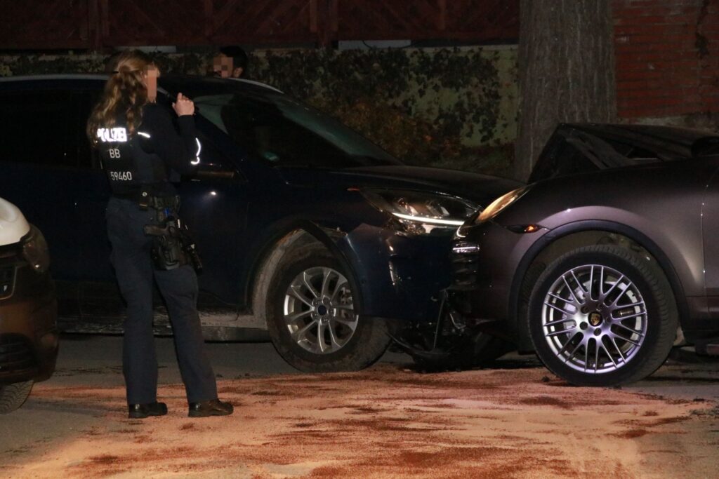 Kurz vor 1 Uhr kam es in Ahrensfelde im Ortsteil Blumberg zu einem schweren Gewaltvorfall. Ein Jäger und eine Jägerin waren mit einem Ford Kuga von der Jagd zurückgekehrt, als ihnen auf der Landsberger Straße ein in Schlangenlinien fahrender Porsche Cayenne auffiel. Sie fuhren rückwärts in die Gartenstraße, der Porsche folgte und rammte den Ford frontal.