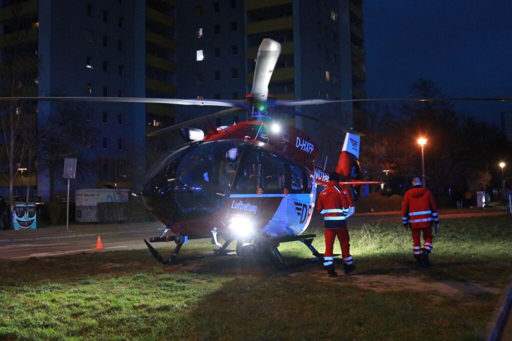 Aufgrund der Schwere der Verletzungen wurde zusätzlich ein Rettungshubschrauber eingesetzt. Der Patient wurde unter notärztlicher Begleitung in ein Krankenhaus transportiert. Sein Zustand ist derzeit kritisch.