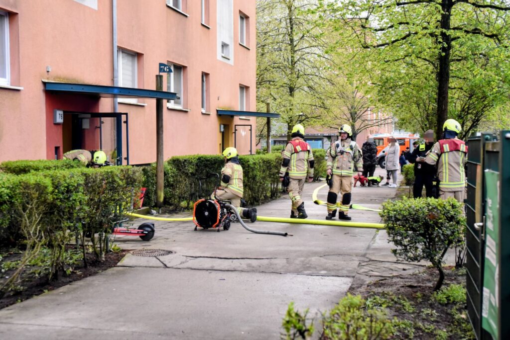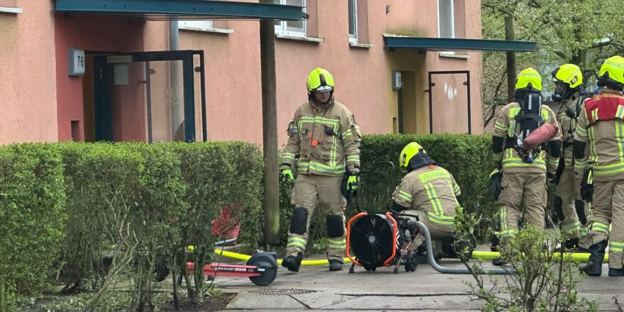 Die Feuerwehr war mit insgesamt 30 Einsatzkräften vor Ort. Nach Abschluss der Löscharbeiten wurde das Treppenhaus vollständig entraucht.